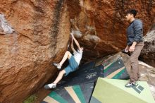 Blue Lizard Climbing and Yoga Hueco Tanks guiding on March 15, 2020, with Liam, Madison, Jack, and Stephen