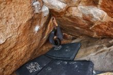 Blue Lizard Climbing and Yoga Hueco Tanks guiding on March 15, 2020, with Liam, Madison, Jack, and Stephen