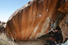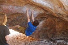 Blue Lizard Climbing and Yoga Hueco Tanks guiding on March 16, 2020, with Liam, Madison, Jack, and Stephen