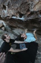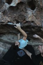 Blue Lizard Climbing and Yoga Hueco Tanks guiding on November 7, 2021, with Ben, Colin, and Derek