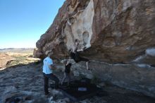 Blue Lizard Climbing and Yoga Hueco Tanks guiding on November 7, 2021, with Ben, Colin, and Derek |