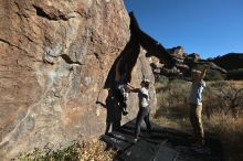 Blue Lizard Climbing and Yoga Hueco Tanks guiding on November 14, 2021, with Alex, Cam, Carys, and Teal