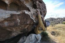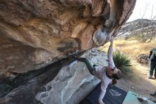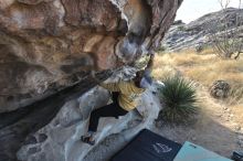 Blue Lizard Climbing and Yoga Hueco Tanks guiding on November 26, 2021, with Caroline & Joey, Devon, Hannah, Jerome, KB & Stef, and Lee