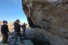 Blue Lizard Climbing and Yoga Hueco Tanks guiding on November 26, 2021, with Caroline & Joey, Devon, Hannah, Jerome, KB & Stef, and Lee