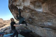 Blue Lizard Climbing and Yoga Hueco Tanks guiding on November 26, 2021, with Caroline & Joey, Devon, Hannah, Jerome, KB & Stef, and Lee