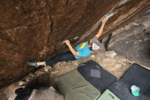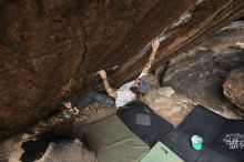 Blue Lizard Climbing and Yoga Hueco Tanks guiding on November 26, 2021, with Caroline & Joey, Devon, Hannah, Jerome, KB & Stef, and Lee