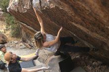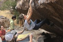 Blue Lizard Climbing and Yoga Hueco Tanks guiding on November 26, 2021, with Caroline & Joey, Devon, Hannah, Jerome, KB & Stef, and Lee