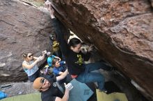 Blue Lizard Climbing and Yoga Hueco Tanks guiding on November 26, 2021, with Caroline & Joey, Devon, Hannah, Jerome, KB & Stef, and Lee