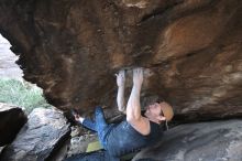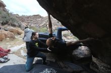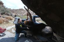 Blue Lizard Climbing and Yoga Hueco Tanks guiding on November 26, 2021, with Caroline & Joey, Devon, Hannah, Jerome, KB & Stef, and Lee