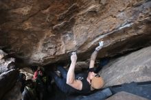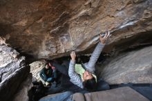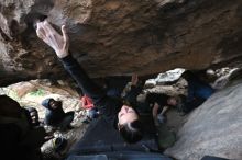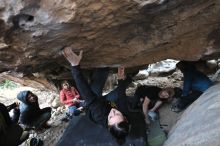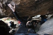 Blue Lizard Climbing and Yoga Hueco Tanks guiding on November 26, 2021, with Caroline & Joey, Devon, Hannah, Jerome, KB & Stef, and Lee