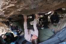 Blue Lizard Climbing and Yoga Hueco Tanks guiding on November 26, 2021, with Caroline & Joey, Devon, Hannah, Jerome, KB & Stef, and Lee