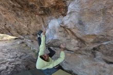 Blue Lizard Climbing and Yoga Hueco Tanks guiding on November 26, 2021, with Caroline & Joey, Devon, Hannah, Jerome, KB & Stef, and Lee