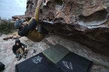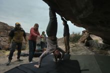 Blue Lizard Climbing and Yoga Hueco Tanks guiding on November 26, 2021, with Caroline & Joey, Devon, Hannah, Jerome, KB & Stef, and Lee