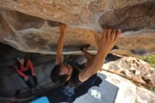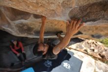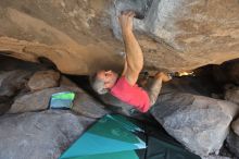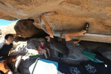 Blue Lizard Climbing and Yoga Hueco Tanks guiding on December 3, 2021, with Bo, Craig, Fei, and Gisella