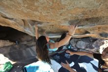 Blue Lizard Climbing and Yoga Hueco Tanks guiding on December 3, 2021, with Bo, Craig, Fei, and Gisella