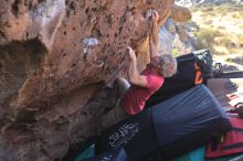 Blue Lizard Climbing and Yoga Hueco Tanks guiding on December 3, 2021, with Bo, Craig, Fei, and Gisella