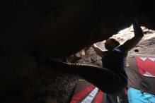 Blue Lizard Climbing and Yoga Hueco Tanks guiding on December 4, 2021, with Craig, Fei, and Gisella