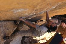 Blue Lizard Climbing and Yoga Hueco Tanks guiding on December 11, 2021, with Avery & Mia, Kevin, Jason, and JP