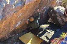 Blue Lizard Climbing and Yoga Hueco Tanks guiding on December 11, 2021, with Avery & Mia, Kevin, Jason, and JP