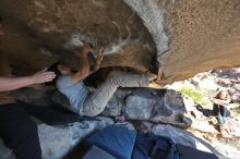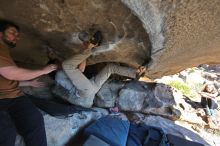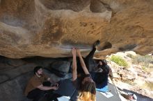 Blue Lizard Climbing and Yoga Hueco Tanks guiding on December 11, 2021, with Avery & Mia, Kevin, Jason, and JP