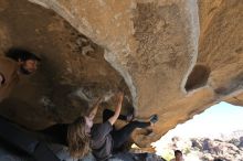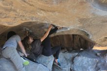 Blue Lizard Climbing and Yoga Hueco Tanks guiding on December 11, 2021, with Avery & Mia, Kevin, Jason, and JP