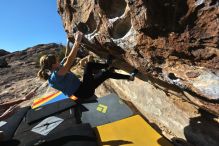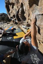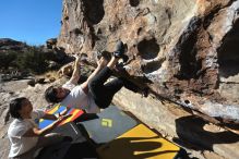 Blue Lizard Climbing and Yoga Hueco Tanks guiding on December 12, 2021, with Avery & Mia, Kevin, Jason, and JP