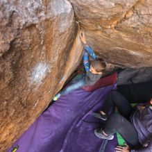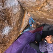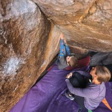 Blue Lizard Climbing and Yoga Hueco Tanks guiding on December 23, 2021, with the Sullivans