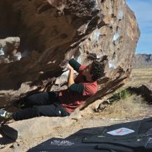 Blue Lizard Climbing and Yoga Hueco Tanks guiding on December 30, 2021, with Alastair, Callum, Chris, Giovanna, and Michael