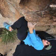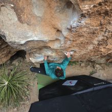 Blue Lizard Climbing and Yoga Hueco Tanks guiding on December 30, 2021, with Alastair, Callum, Chris, Giovanna, and Michael