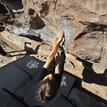 Blue Lizard Climbing and Yoga Hueco Tanks guiding on December 30, 2021, with Alastair, Callum, Chris, Giovanna, and Michael