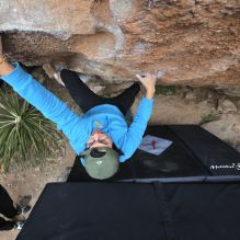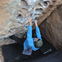 Blue Lizard Climbing and Yoga Hueco Tanks guiding on December 30, 2021, with Alastair, Callum, Chris, Giovanna, and Michael
