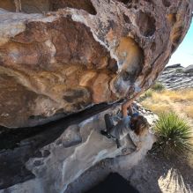 Blue Lizard Climbing and Yoga Hueco Tanks guiding on January 6, 2022, with Will and Gavin