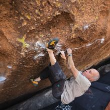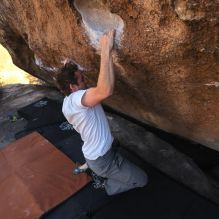Blue Lizard Climbing and Yoga Hueco Tanks guiding on January 7, 2022, with Anna, John, Mark, and Sue