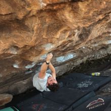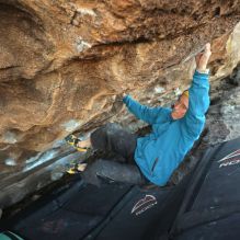 Blue Lizard Climbing and Yoga Hueco Tanks guiding on January 7, 2022, with Anna, John, Mark, and Sue