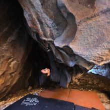 Blue Lizard Climbing and Yoga Hueco Tanks guiding on January 7, 2022, with Anna, John, Mark, and Sue