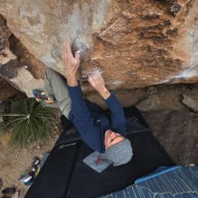 Blue Lizard Climbing and Yoga Hueco Tanks guiding on January 9, 2022, with Matt and Sveta