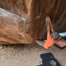 Blue Lizard Climbing and Yoga Hueco Tanks guiding on January 9, 2022, with Matt and Sveta