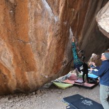 Blue Lizard Climbing and Yoga Hueco Tanks guiding on January 9, 2022, with Matt and Sveta