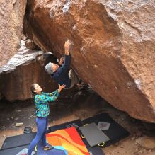 Blue Lizard Climbing and Yoga Hueco Tanks guiding on January 9, 2022, with Matt and Sveta