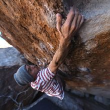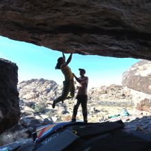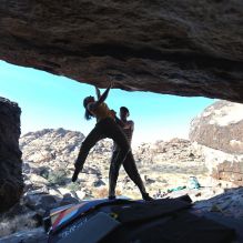 Blue Lizard Climbing and Yoga Hueco Tanks guiding on January 13, 2022, with Matt and Sveta