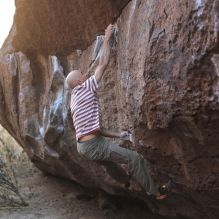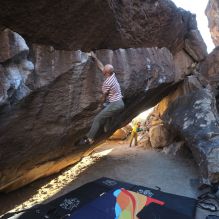 Blue Lizard Climbing and Yoga Hueco Tanks guiding on January 13, 2022, with Matt and Sveta