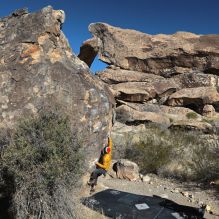 Blue Lizard Climbing and Yoga Hueco Tanks guiding on February 6, 2022, with Bryson and Kayvon |