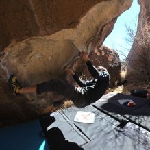 Blue Lizard Climbing and Yoga Hueco Tanks guiding on February 6, 2022, with Bryson and Kayvon