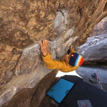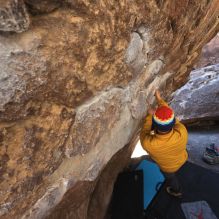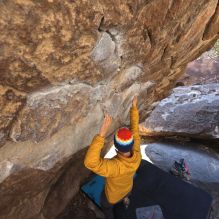Blue Lizard Climbing and Yoga Hueco Tanks guiding on February 6, 2022, with Bryson and Kayvon