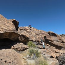 Blue Lizard Climbing and Yoga Hueco Tanks guiding on February 20, 2022, with Cam, Ian, Kamal & Jessica, Mike, and Nick