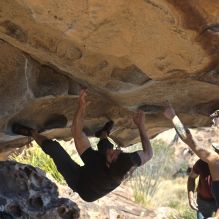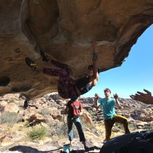 Blue Lizard Climbing and Yoga Hueco Tanks guiding on February 20, 2022, with Cam, Ian, Kamal & Jessica, Mike, and Nick