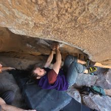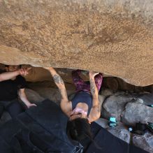 Blue Lizard Climbing and Yoga Hueco Tanks guiding on February 20, 2022, with Cam, Ian, Kamal & Jessica, Mike, and Nick