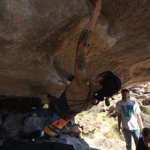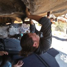 Blue Lizard Climbing and Yoga Hueco Tanks guiding on February 20, 2022, with Cam, Ian, Kamal & Jessica, Mike, and Nick