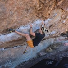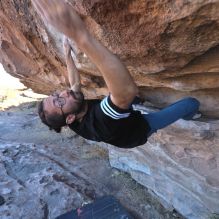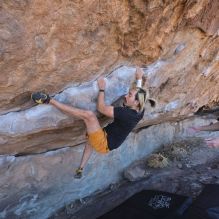 Blue Lizard Climbing and Yoga Hueco Tanks guiding on February 26, 2022, with AJ, Bradley, Caleb, and Chase