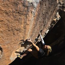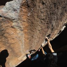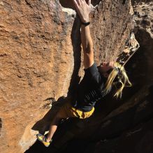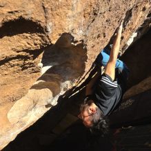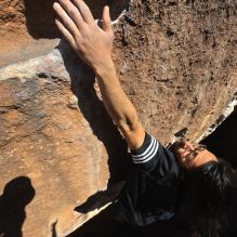 Blue Lizard Climbing and Yoga Hueco Tanks guiding on February 26, 2022, with AJ, Bradley, Caleb, and Chase
